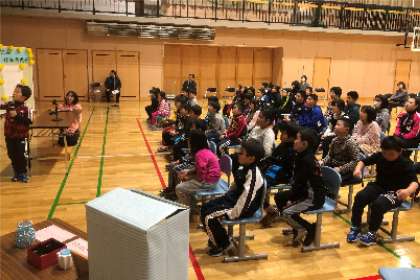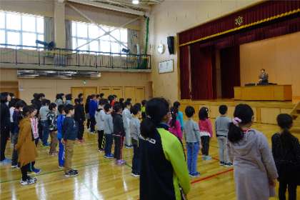 3学期も順調に(その1) 公開日 2019/02/05 更新日 2019/02/05 できごと 3学期がスタートし,予定されている行事や児童会など子どもたちの活動も充実した取組がなされています。 上)1月16日の始業式,背筋を伸ばし,「がんばるぞ」という意気込みが感じられました。 中)1月22日,恒例となっている3〜6年生の書初め体験,気持ちを込めて書きました。 下)1月25日の冬休み作品発表会は,12名の代表児童の立派な発表はもちろん,質問や感想もたくさん出されました。