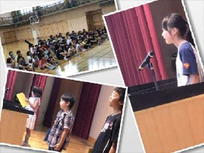 今日の終業式では,児童会の代表が夏休みに向けてお話しをしました。また,1・
