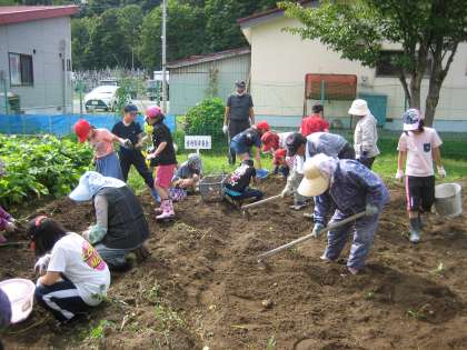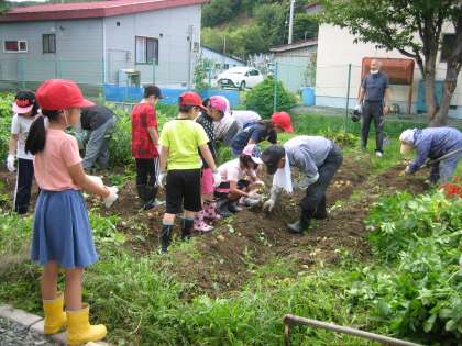 収穫した芋は,昨年同様,カレーライスの材料にして,幸楽会の方も招いて一緒に給食を食べたいと思います。