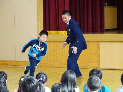 11月11日(月)に不審者対応の避難訓練と防犯教室を開催しました。不審者対応では基本的に子どもたちと不審者を接触させないことが大切であるため、子どもたちにとっては訓練と言っても何が起こっているのか知るよしもありませんでしたが、先生方は不審者発見から対応、通報、避難等の一連の動きを確認することができました。その後、避難場所となった体育館で防犯教室を開催し、羽幌警察署の方から、実際にあった不審者事案を数人の子どもたちに体験してもらって、身を守る方法をいくつか教えてもらいました。さらに、お昼の放送を使って「いかのおすし」(←ご存じでしょうか?不審者対応の心得を覚えることばです。)の大切さをあらためて教えてくださいましたが、何より一番大切なことは助けを呼ぶことだそうです。防犯教室の最後には、着任されたばかりの古丹別駐在所の方から、冬の交通安全についてお話しいただきました。これから本格的な冬になり、外出の機会は減るかもしれませんが、日没が早くなったり見通しの悪いところができるなど、交通安全だけでなく不審者にも十分気を付けていかなければなりません。これからも家庭・地域・学校が一体となって子どもたちを守る取り組みをすすめていきましょう。