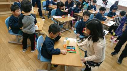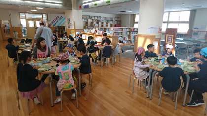 2月6日(木)、古丹別小学校の新1年生1日入学がありました。今年は初めての試みとして給食体験を行いました。1年生は園児の分の給食の配膳をしたり、片付けを教えたりするなど、もうすっかりお兄さんお姉さんでした。園児は1年生と小学校・保育所の先生と一緒にカレーライスを美味しくいただきました。その後は、1年生と一緒に体育館で遊んだり、1年生教室で紙皿に自画像を描いたり、紙コップでゴムで飛ぶロケットを作成するなど、楽しく学習しました。あと2ヶ月、新1年生の小学校入学を子どもたちも先生方もとても楽しみにしています。