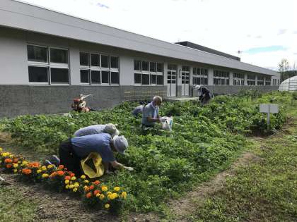 幸楽会の方々の畑作業 公開日 2020/07/13 更新日 2020/07/13 出来事 学校園を利用して作っていただいている幸楽会の畑ですが、ジャガイモと枝豆も順調に成長しているところです。 今日(7月13日)は、皆さんで畑の除草作業をしてくださいました。 収穫後の幸楽会の方々との交流が難しい状況ですが、秋にはたくさんの収穫があることを楽しみにしたいものです。