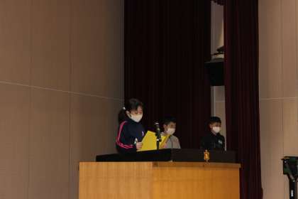 3学期始業式&冬休み作品展 公開日 2021/01/25 更新日 2021/01/25 出来事 去年とうって変わって冬らしい冬休みが終わりました。3学期始業式では,2・4・6年生の代表児童が,冬休みの思い出と3学期の抱負を堂々と発表しました。また,作品展にはアイデアいっぱいの自由研究がならんでいます。子どもたちは休み時間のたびに興味深そうにのぞきこんでいます。